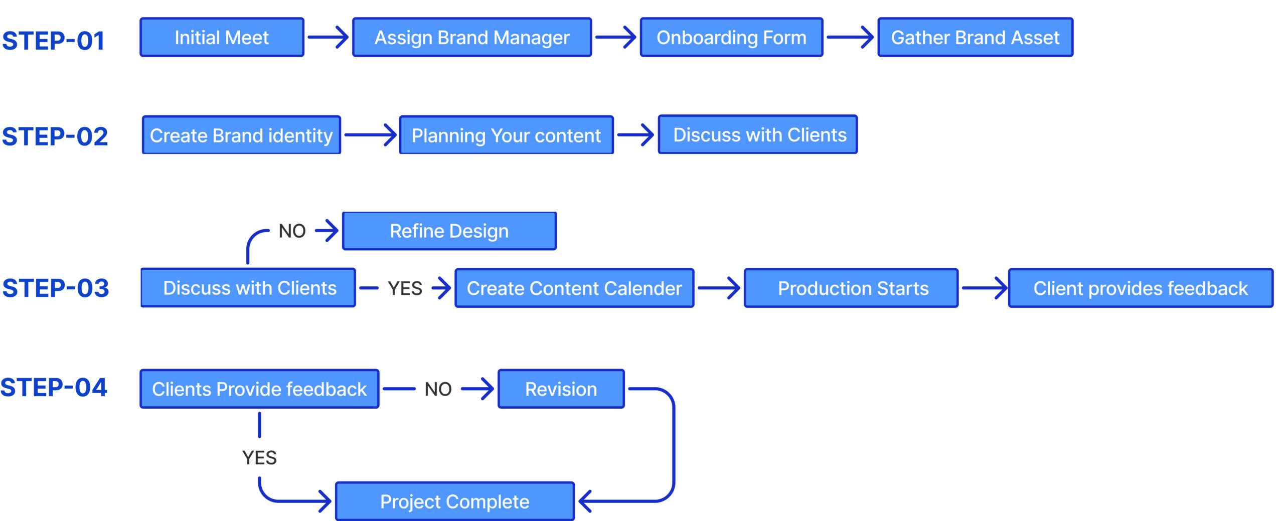 - You get a dedicated Brand Manager who meets with you twice daily—once for new briefs and once for feedback. Two calls per day ensure minimal back-and-forth and full alignment on briefs and revisions. Your Brand Manager becomes your remote project manager.